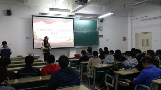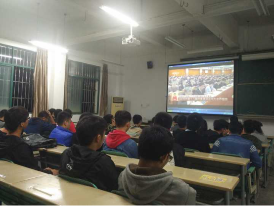 在学校党委的统一部署下,机电工程系学生党支部组织学生党员、党小组成员于2017年10月19日晚18:30在三教101集中观看了第十九次全国代表大会开幕会,并围绕会议内容展开讨论学习。