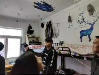 最后,队伍四人达到127寝室,127寝室人员都在,表示欢迎队伍的到来,其中瑜天旭主席就保修方面给予建议,三位老师表示这个主题新颖——星空之下。能给人带来不一样的感觉,希望127寝室能够在剩余的时间做的更好。