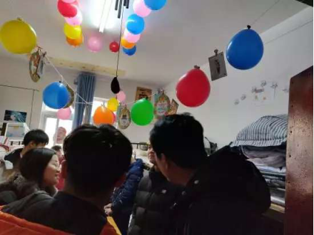 其次,队伍对122宿舍进行视察,122宿舍整体干净,由很多气球装饰,将空间利用的很好,李伟健老师适时的提出几个更好的意见给寝室负责人,希望能够把寝室弄的更好。