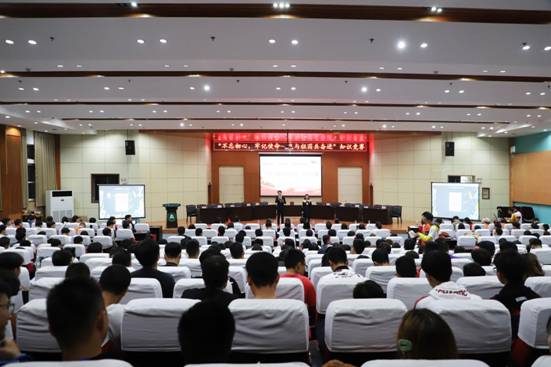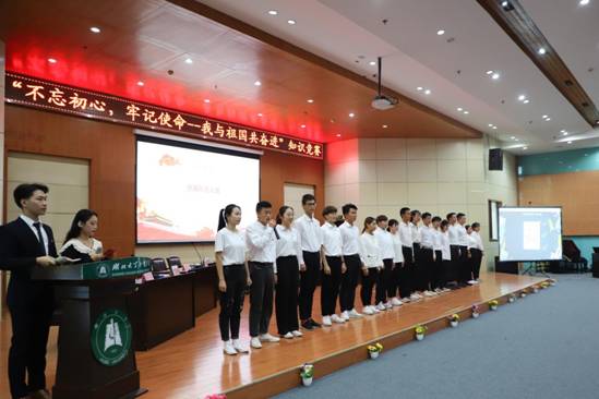 10月22日晚6时30分,为贯彻党中央关于“不忘初心,牢记使命”主题教育的要求,推动学生党员深入学习十九大报告和习近平新时代中国特色社会主义思想,由beat365在线唯一官网学生党支部和艺术与设计学院学生党支部联合举办的“不忘初心,牢记使命——我与祖国共奋进”知识竞赛在学术报告中心弘德厅隆重举行。校党委彭德忠书记和部分学校教职工出席本次活动。