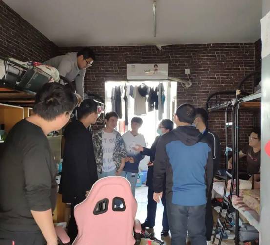 教师和学生干事分组对机械学院学生内苑八号楼、内苑十一号楼、学生北苑一号楼、北苑二号楼所在寝室进行卫生安全和防疫管控情况检查,在检查过程中,老师们再次强调学校防疫制度,提醒同学们要注意继续做好防疫工作,要特别注重个人卫生问题:戴口罩,勤洗手,勤洗澡,勤更衣,勤洗衣,寝室常通风,不堆积垃圾,不吃生冷食物,常晾晒衣物床被子等,继续做好防疫常态化管理,出入校门打卡,早中晚健康上报,非必要不出校门,不随意离校、离汉等。在走访过程中,老师们还细心提醒同学们周末要大幅度降温,同学们要注意添加衣服,注意保暖,谨防感冒。