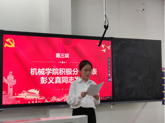 第四项:艺术学院李荣燕同志着重强调了党课纪律,要求学员们严肃认真对待每次党课学习以及后续安排的线上学习及线下活动。