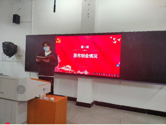 艺术与设计学院学生党支部执行纪检委员彭秋怡同志宣布到会情况。