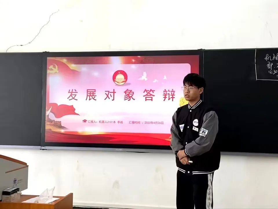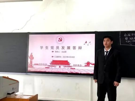 为端正学生入党动机,考察入党积极分子的政治素养,提升学生党员发展质量,4月26日中午12:30分,beat365在线唯一官网于知真楼301召开2023年上半年学生党员发展答辩会,共有32位入党积极分子进行了现场答辩,beat365在线唯一官网党总支书记陈驰、学生党支部书记王松、学生党支部指导老师石晶晶、分团委学生会指导老师李伟健、在校学生党员及部分入党积极分子参加。会议由陈雨同志主持。