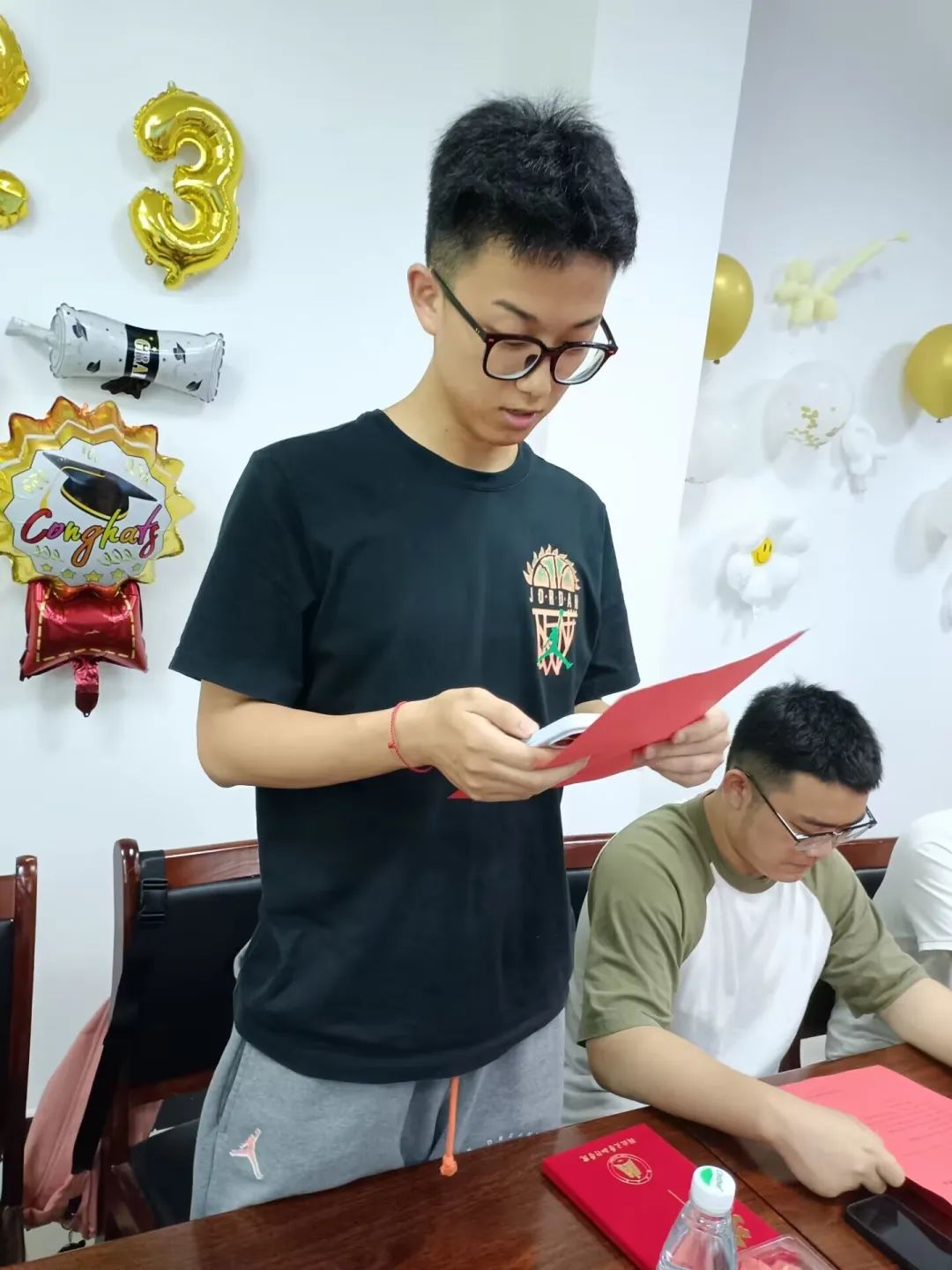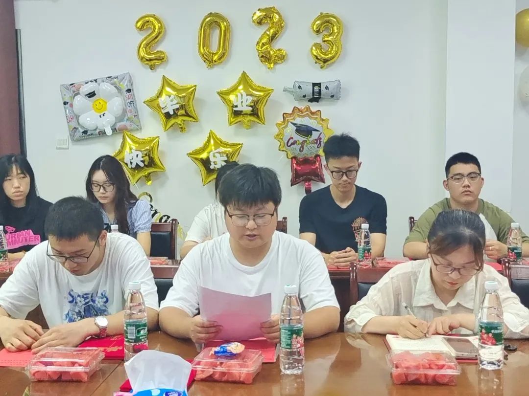 毕业生党员代表覃粤、孔维安、杜家璇、关家铭结合自身在校学习和成长经历,向与会的领导老师汇报了求学收获与感悟,并对在自己成长路上关心与帮助自己的老师和同学们表示深深的感谢。