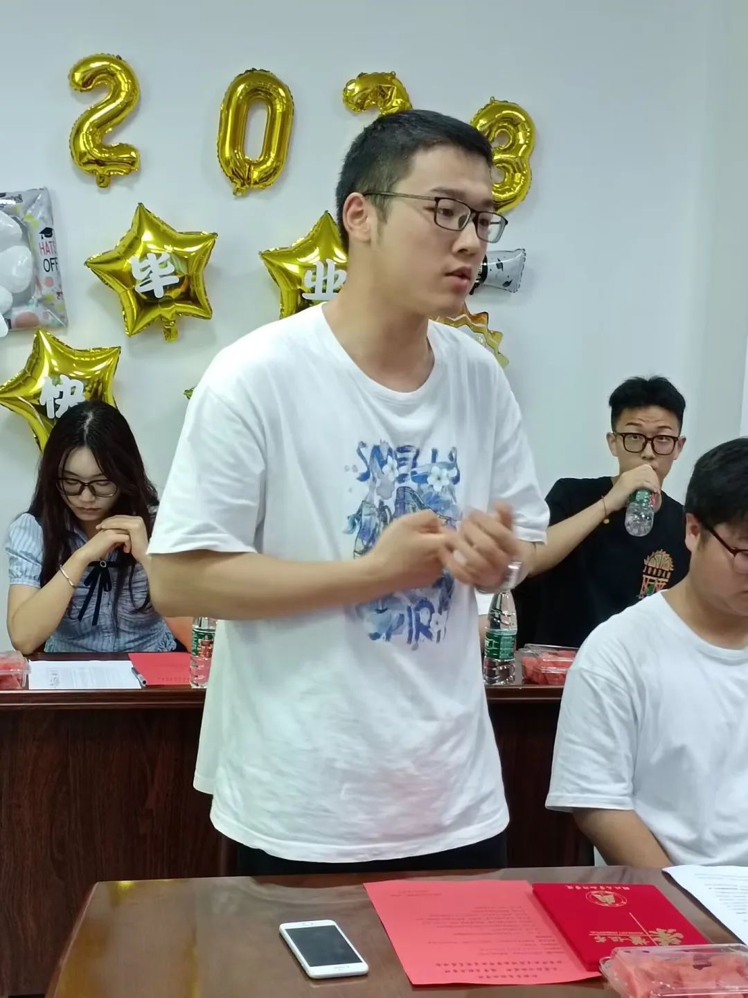 优秀毕业生代表夏淦、郭继成、边威、王子伦分别讲述了他们在大学四年的经历与收获,在生活学习中的成长,并讲述了将来发展的一个规划和目标。表示在以后的生活中会不忘初心,发扬机械不畏艰难险阻的精神,在各行各业施展才华,在每个领域发光发热,并真诚的祝愿每一位老师身体健康,万事顺利。
