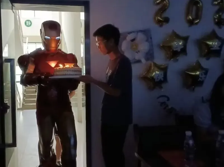 最后,机械学院也为毕业生们送出一份小惊喜,王松书记扮作钢铁侠送蛋糕并为毕业生送上祝福。在一片欢声笑语中本次优秀毕业生座谈会暨毕业生党员座谈会圆满结束。