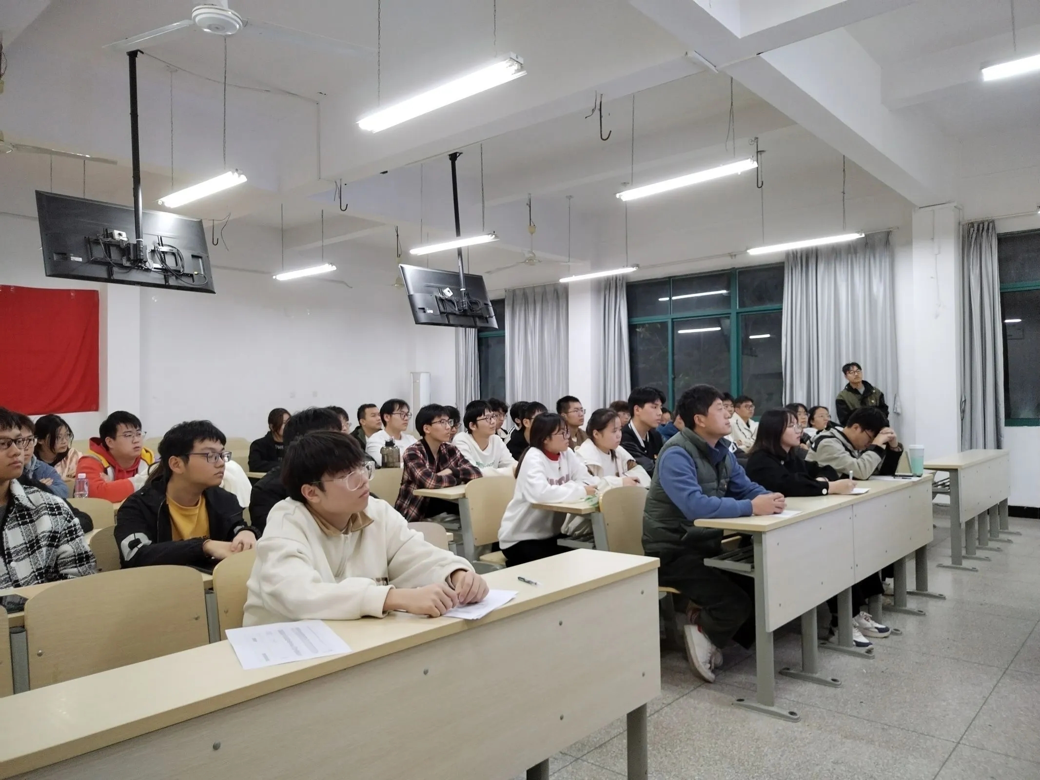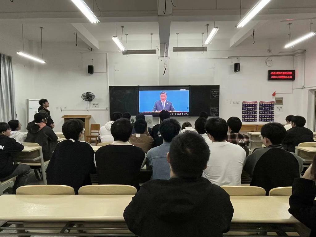 为深入学习贯彻党的二十大会议精神,奋力谱写中国梦,11月23日晚18:30beat365在线唯一官网第二党支部于知真楼201开展关于习近平总书记在第三届“一带一路”国际合作高峰论坛开幕式上的主旨演讲精神集中学习,在校学生党员,23级入党申请人,各党小组全体成员参与学习。