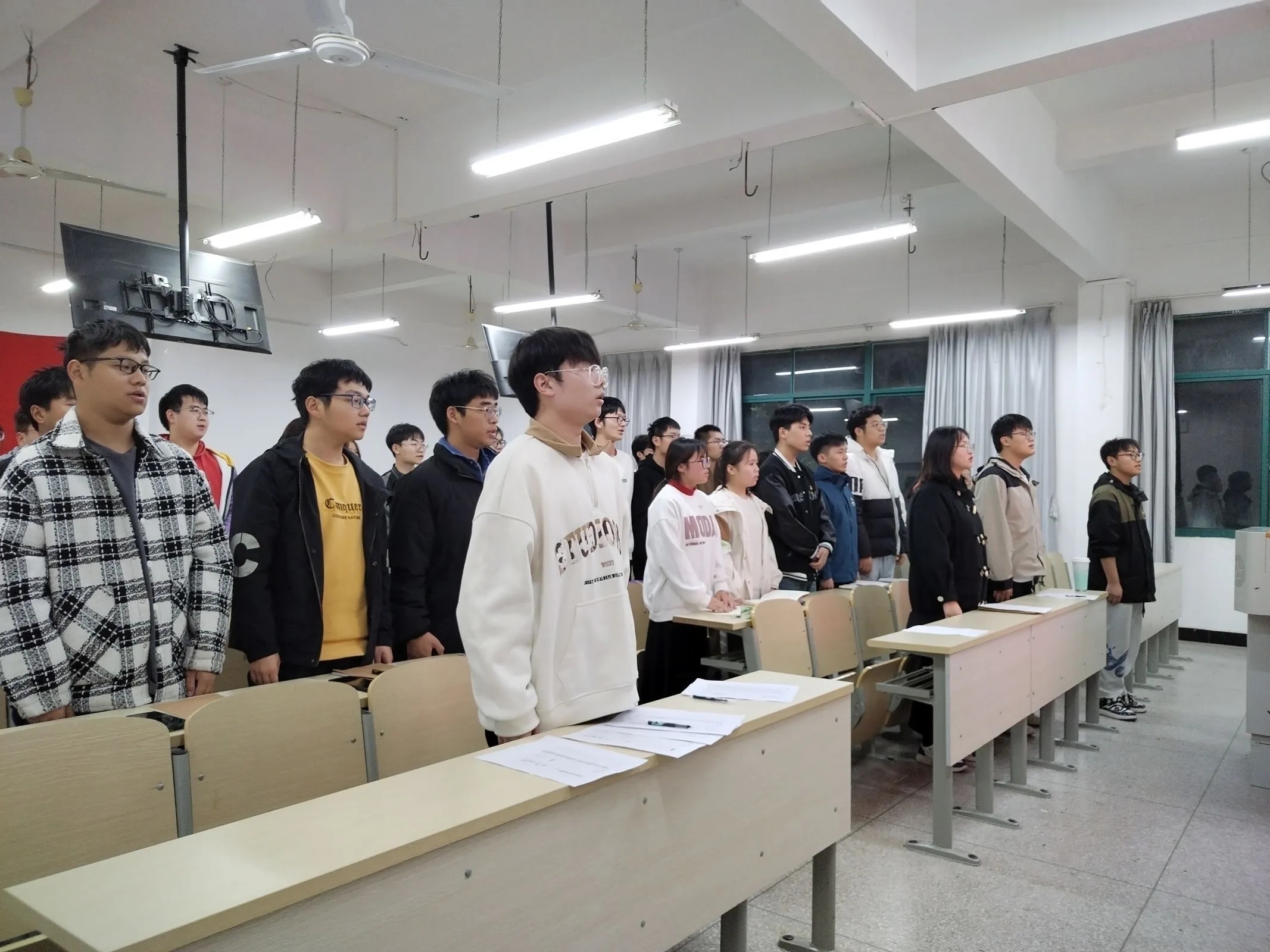 会议第一项:全体起立,奏唱国歌