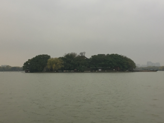 嘉兴市不大,没走多远我们就来到了南湖边,久仰的革命圣地,烟波浩渺的南湖弥漫着雾气,微雨,放眼望去水天一色,心中不免感慨道:南湖的风光犹如一幅泼墨渲染的写意山水画,烟雨楼台,岸柳亭榭,浓墨重彩,显現着优雅之美。此时的湖心岛静谧安详,那标志性的烟雨楼盈盈立于岛上。具有历史意义的那条船停在湖心岛岸边,远远望去,仿佛聆听到船内那庄严肃穆低沉的声音,那么小小的一条船,那么几个富于理想的人由此改写了中国的历史,这是何等的伟大!