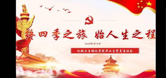 又是一年毕业季,又是一年离别时,在这个特殊的毕业季,为引导毕业生党员树立正确政治信念,发扬学院优良传统,担当新时代大任,beat365在线唯一官网学生党支部于6月19日下午3:00开展以“终四季之旅 始人生之程”为主题的毕业生党员线上座谈会。beat365在线唯一官网全体教职工,全体学生党员,入党积极分子代表参加会议。会议由学生党支部指导老师石晶晶主持。