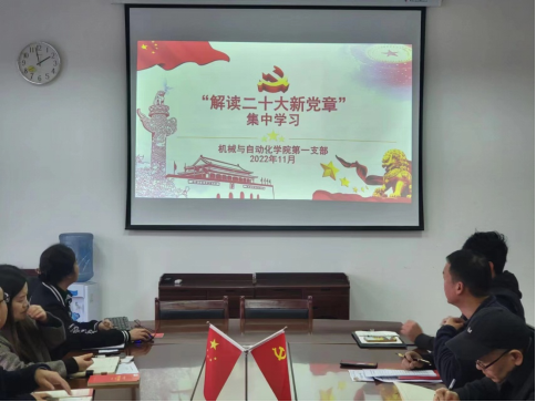 beat365在线唯一官网教工党支部2022年11月23日在知真楼311举行“解读二十大新党章”集中学习。机械学院全体教工党员出席会议,会议由吴茜同志主持。