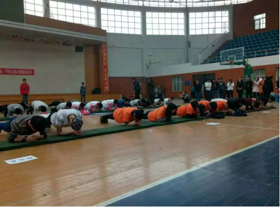 经过层层筛选,各系部选出5名选手参加平板支撑大赛决赛,平板支撑决赛于二零一六年十一月三十号在体育馆举行,随着观众和裁判以及参赛选手的入场。平板支撑决赛开始,计时员计时,裁判检查参赛选手姿势是否合格,现场十分活跃,各个选手都是代表系部参赛,有很多选手都顶着压力上场,随着时间的增加,很多选手都支撑不住,一个接着一个倒下,当然也有一些选手是因为姿势不对,被裁判取消参赛资格的。到十五分钟之后,比赛进行到白热化状态,因为场上只剩下十二个选手了。时间在一秒一秒的增加着,这十二名精英选手也在坚持着,因为坚持到最后才是赢家,十六分钟的时候只剩下六名选手了。到二十分钟的时候还剩两名选手,分别是经管系储昭奇同学和会计系黄大效同学,这两位同学凭着毅力坚持到最后。最终在二十二分十秒的时候黄大效同学倒下了,储昭奇同学获得了冠军。