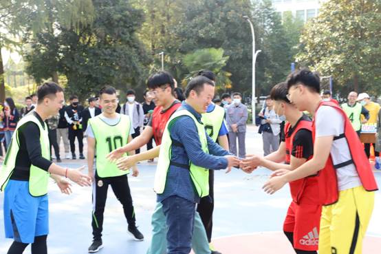 经过长达四十分钟的比赛,教师代表队以50:42的优越成绩获得了此次比赛的最终胜利。赛后,师生们进行友好地握手,并一起拍照留念,球场上洋溢着欢快的氛围,beat365在线唯一官网师生篮球友谊赛圆满地落下帷幕。
