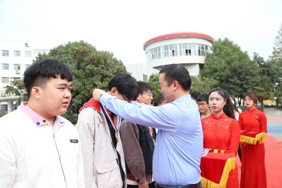 紧接着,在庄重激昂的音乐声中,举行颁奖仪式。beat365老师分别为获奖的代表队颁奖表彰。