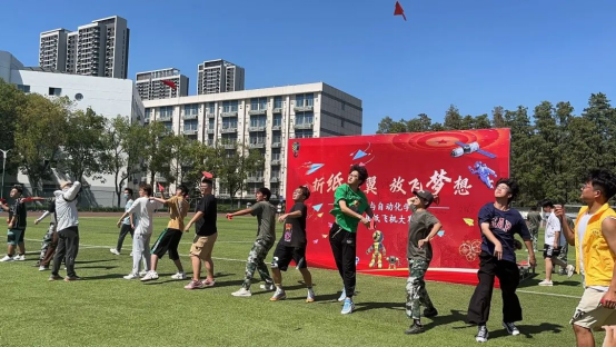 辅导员李伟健老师也加入到纸飞机大赛中,与同学们一起感受童年时期的快乐时光。