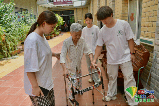 图为团队成员协助行动不便的奶奶回房休息。邵远泽 供图