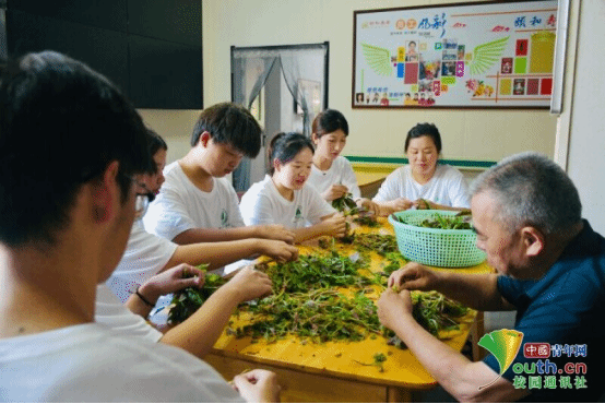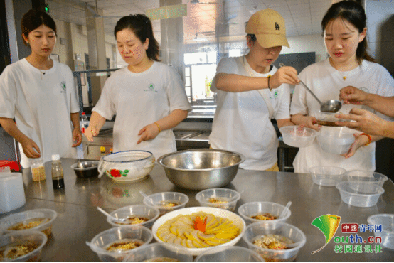 图为团队成员为食堂午饭食材进行预处理。付运豪 供图