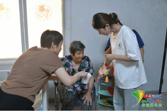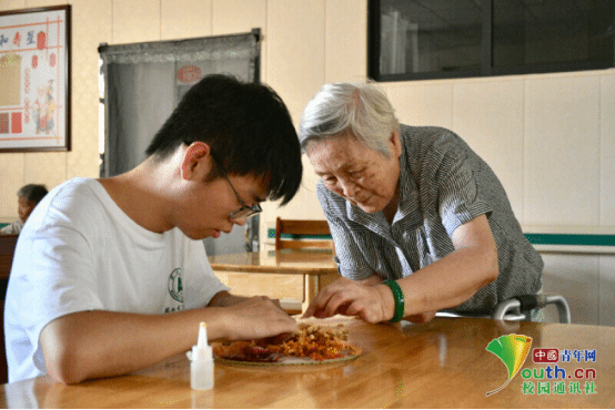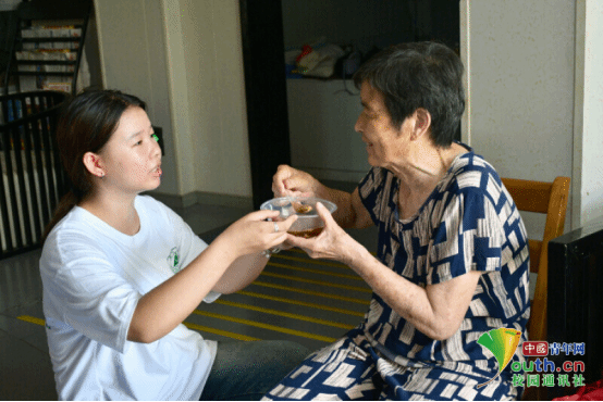 图为团队成员给奶奶送冰粉品尝,并耐心辅导奶奶进食。付运豪 供图