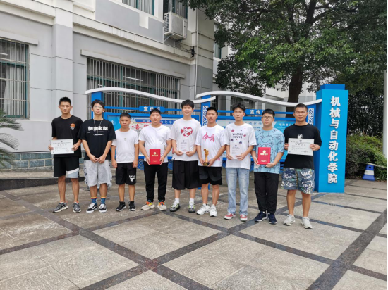 全国机械类团体三等奖证书及获奖者合影