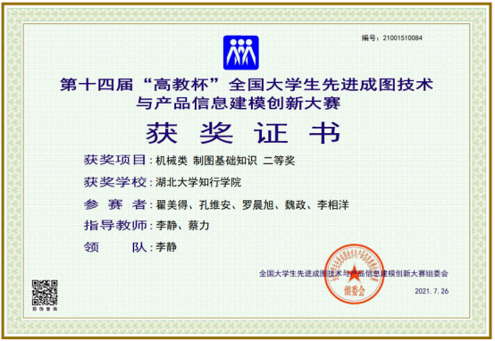 “高教杯”全国大学生先进成图技术与产品信息建模创新大赛是由教育部高等学校工程图学课程教学指导委员会、中国图学学会制图技术专业委员会和中国图学学会产品信息建模专业委员会联合主办的图学类课程最高级别的国家级赛事,被誉为“图学界奥林匹克”。