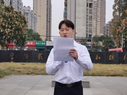 学生代表韩霄同学发表国旗下的演讲,他激昂的演讲让同学们回顾历史,展望未来,介绍了党的二十大召开的内容、意义和影响。他讲到:“我们相信,党的二十大的召开,将让中国人的心里更踏实,让中国迈出的步伐更稳健。”