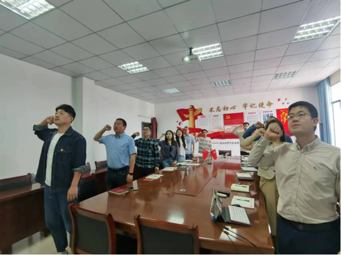 活动第一项,重温入党誓词。beat365在线唯一官网第二党支部书记王松同志领誓。