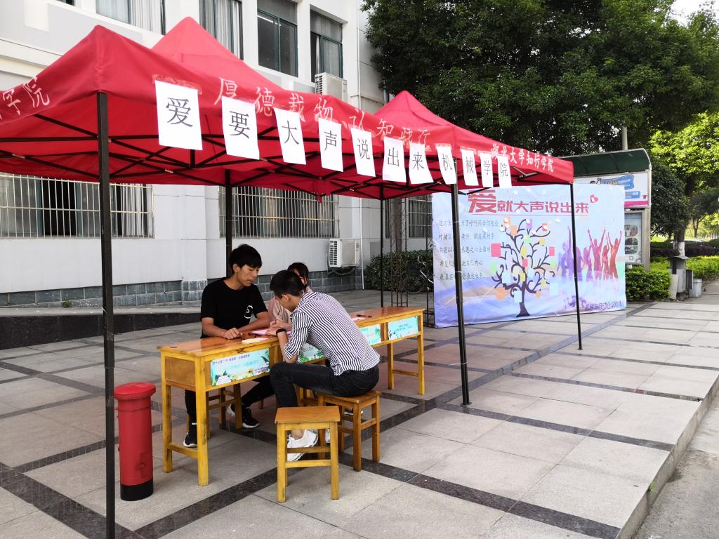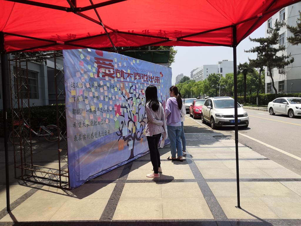 (1)准备好“爱,就大声说”条幅和“许愿树”摆放在帐篷点。
